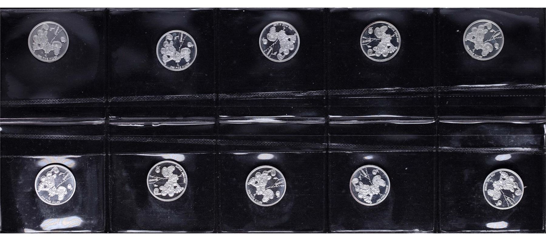 One Lot of (10) Disney Mickey Mouse 1/20 oz. .999 Fine Silver Coin Rounds.