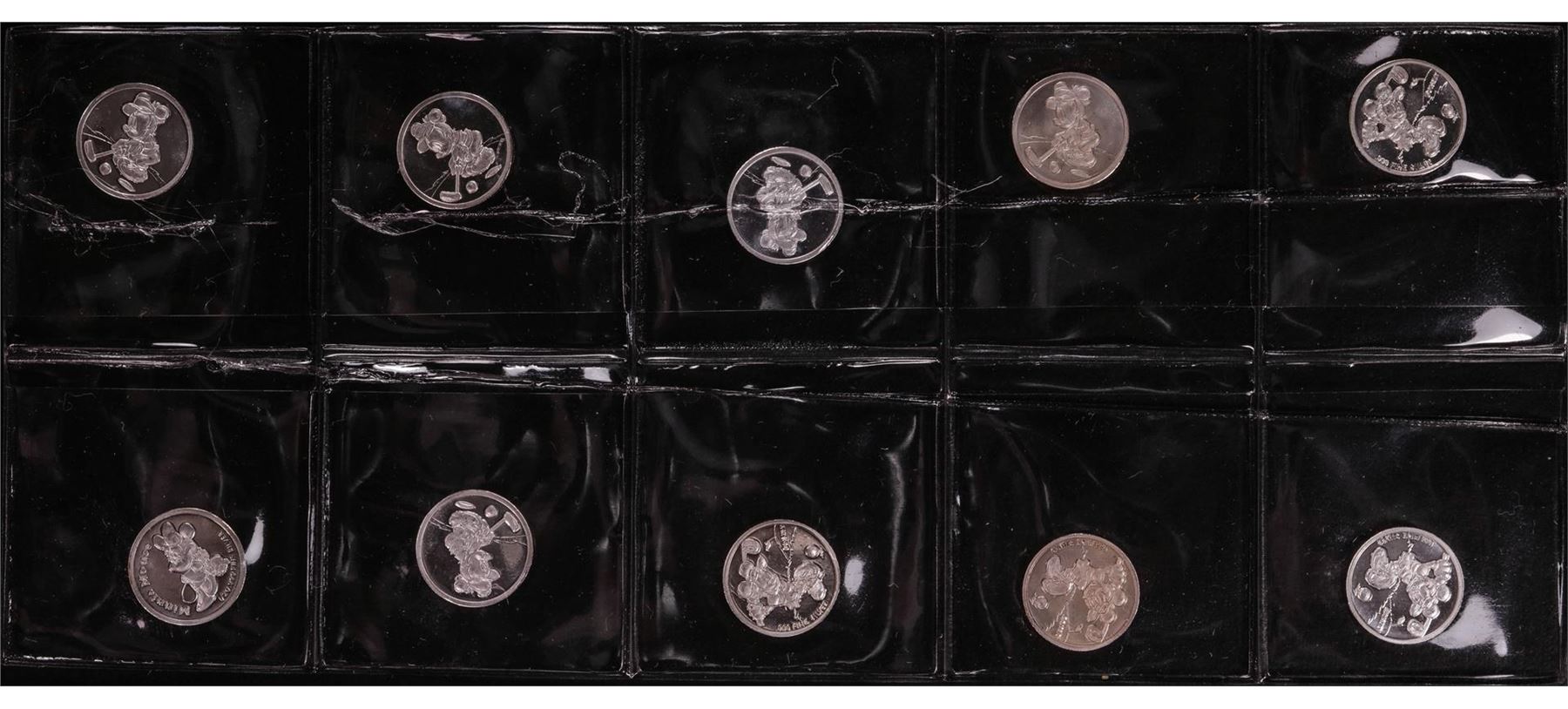 One Lot of (10) Disney Mickey & Minnie Mouse Golfer 1/20 oz. .999 Fine Silver Coin Rounds.
