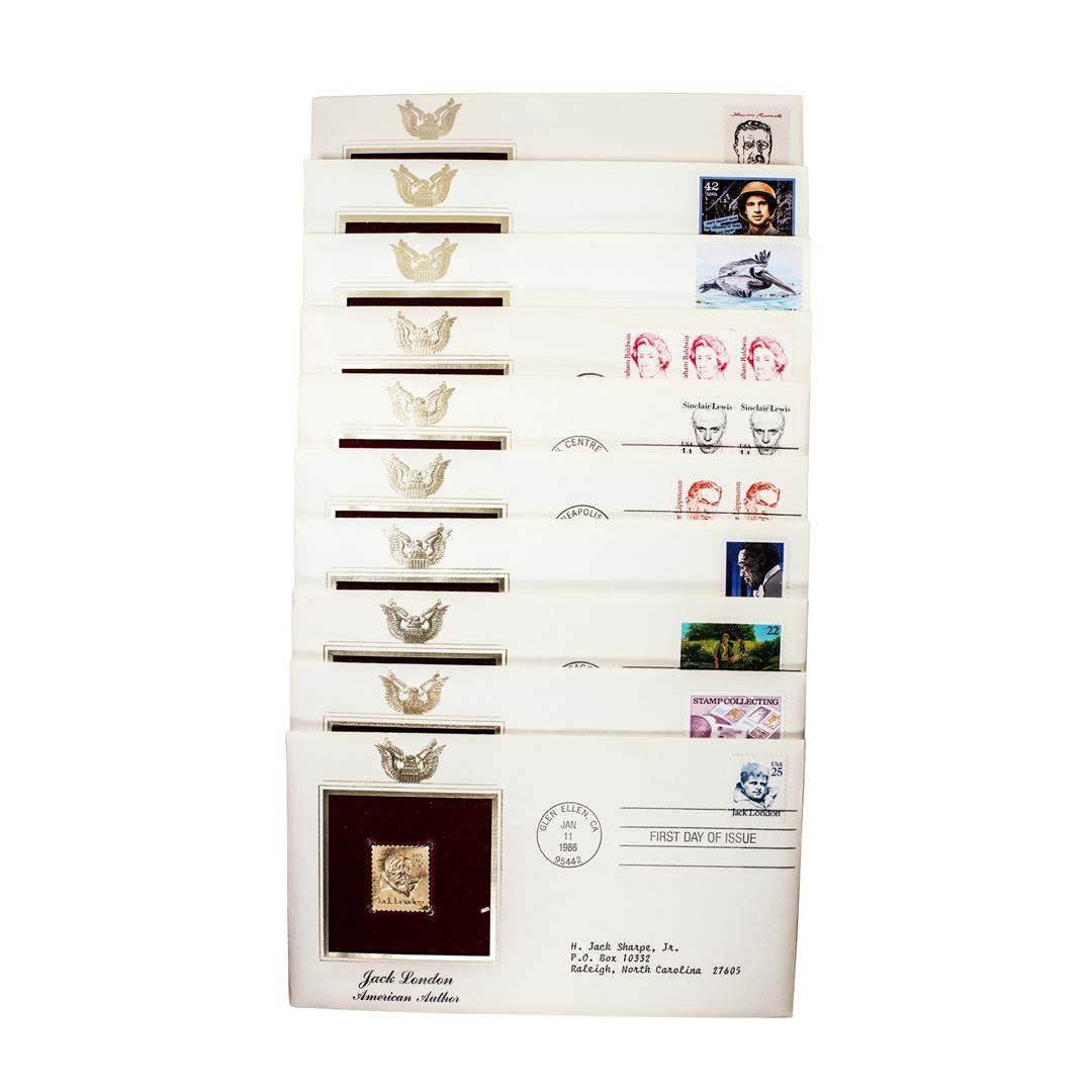 Lot of (10) First Day Of Issue 22KT Gold Replica Stamps in Envelopes