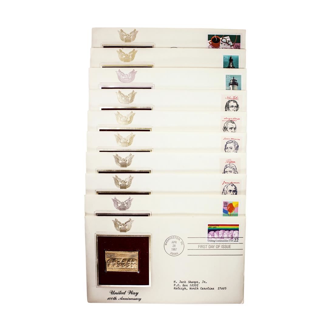 Lot of (10) First Day Of Issue 22KT Gold Replica Stamps in Envelopes