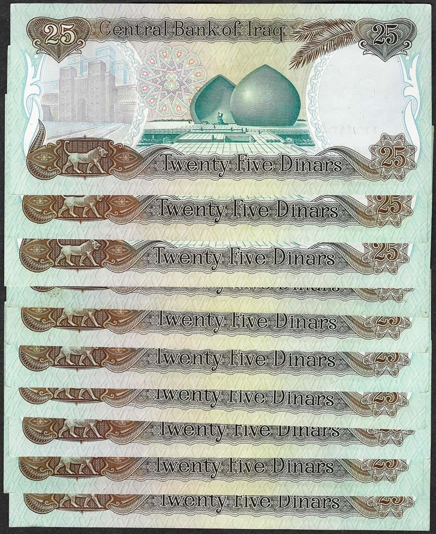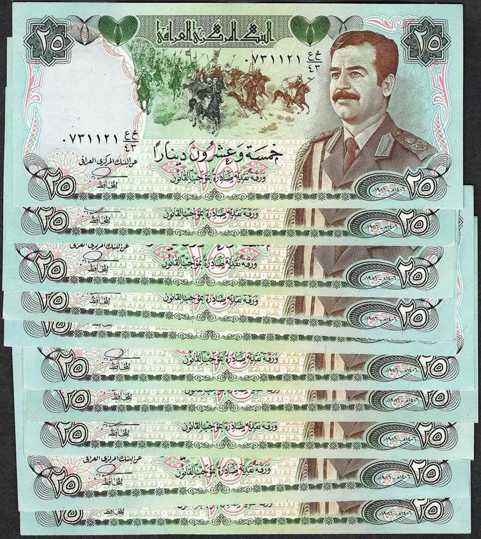 Lot of (10) Iraqi 25 Dinars Saddam Hussein Notes
