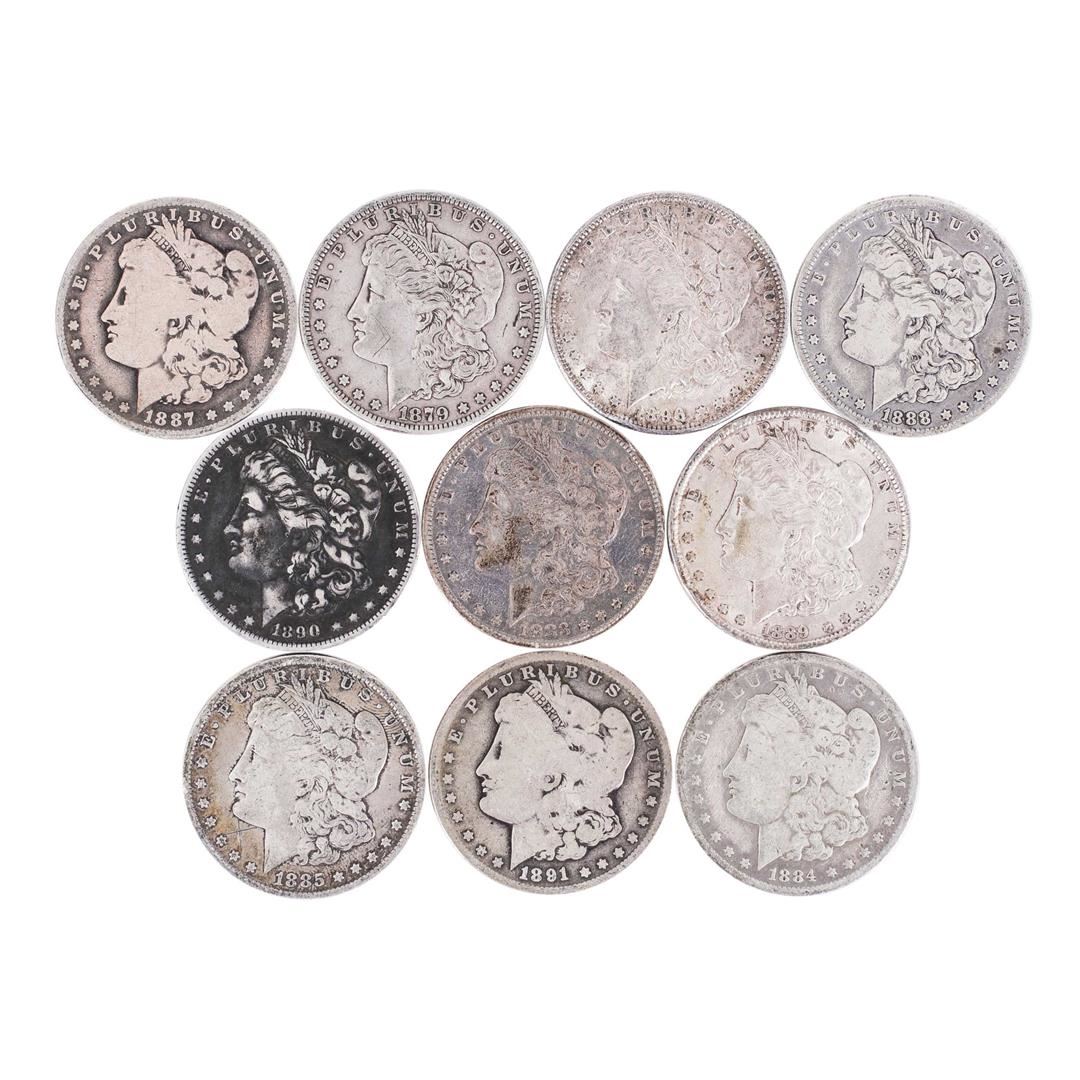 One Lot of (10) Pre 1921 $1 Morgan Silver Dollar Coins.