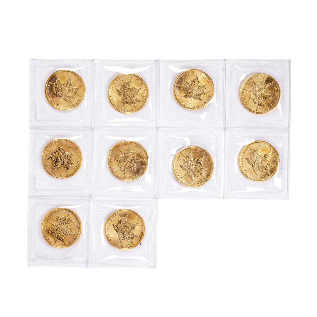 One Lot of (10) Sealed 1986 Canadian $5 Maple Leaf Gold Coins.