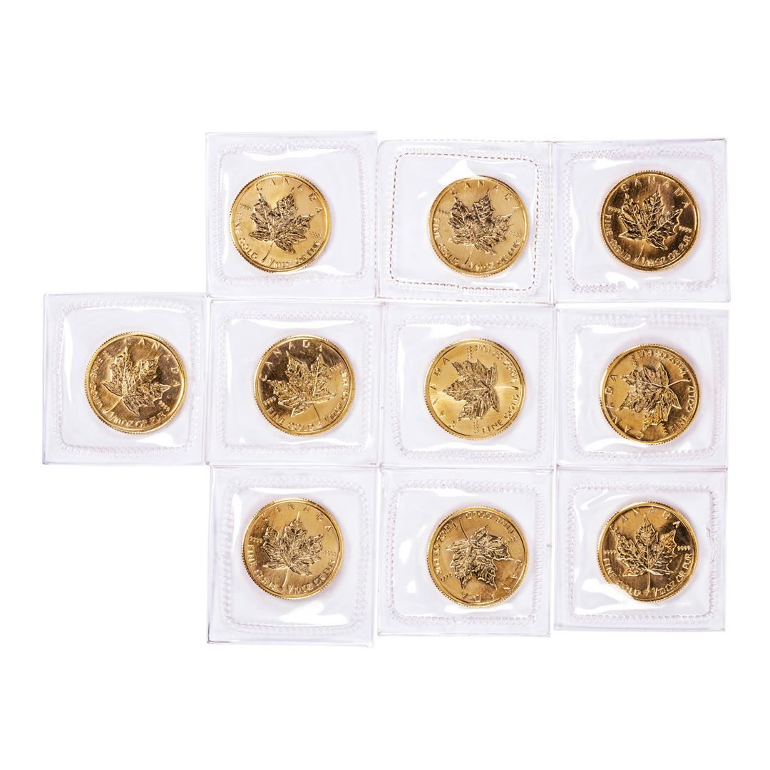 One Lot of (10) Sealed 1998 Canadian $5 Maple Leaf Gold Coins.