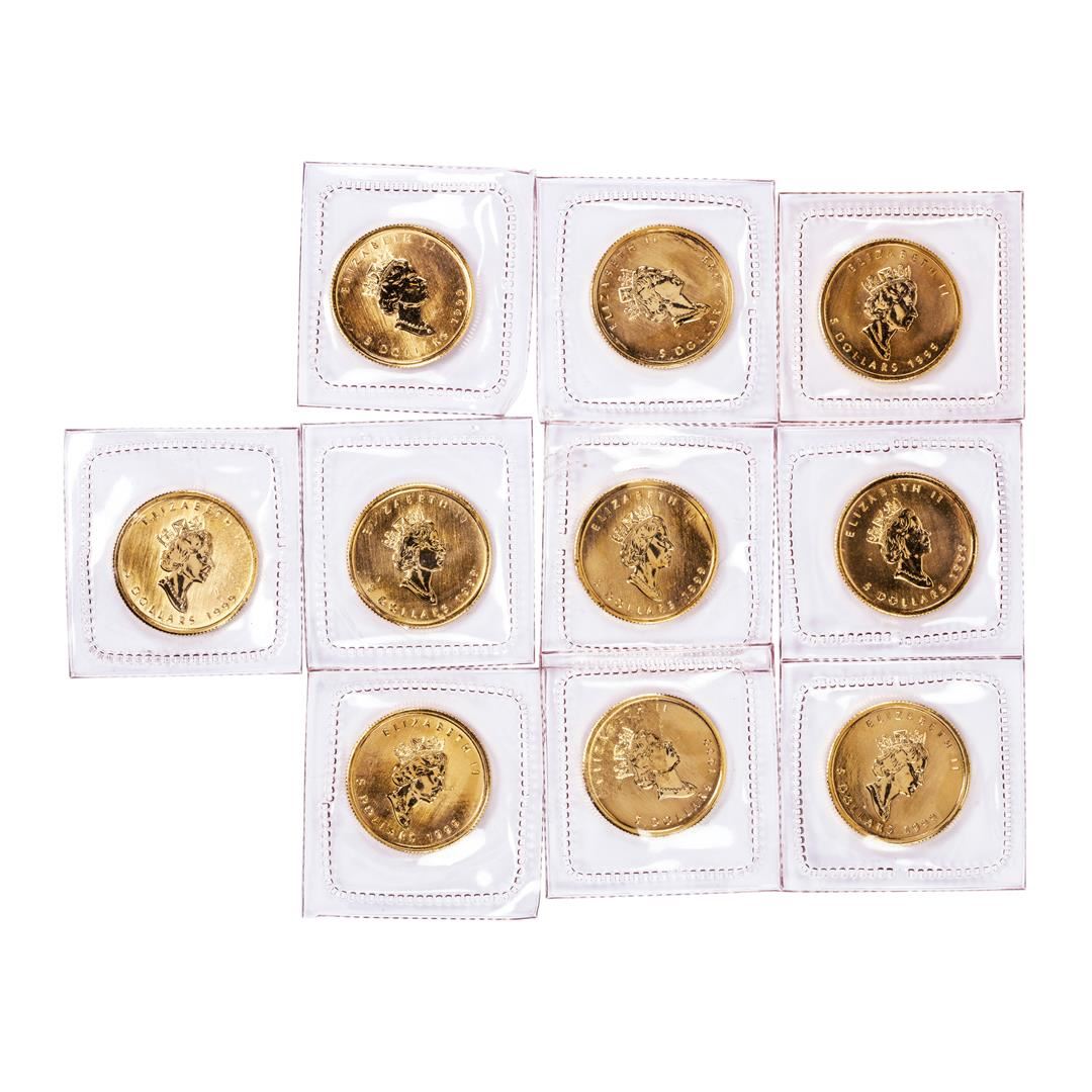 One Lot of (10) Sealed 1999 Canadian $5 Maple Leaf Gold Coins.