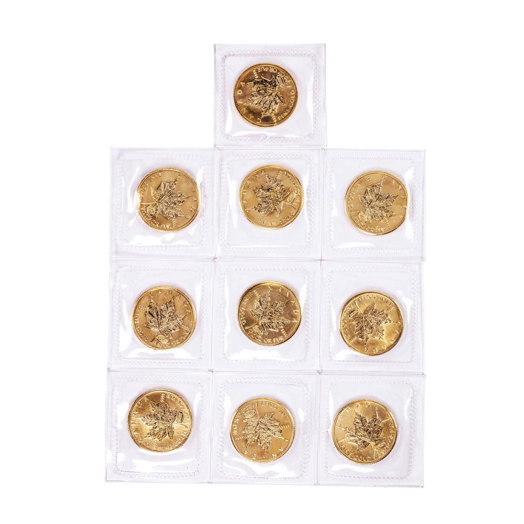 Lot of (10) Sealed 1999 Canadian $5 Maple Leaf Gold Coins
