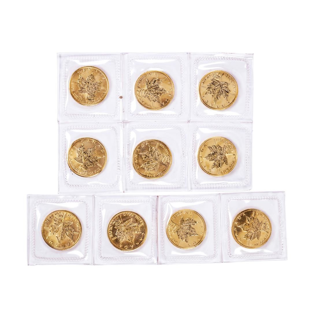One Lot of (10) Sealed 1999 Canadian $5 Maple Leaf Gold Coins.