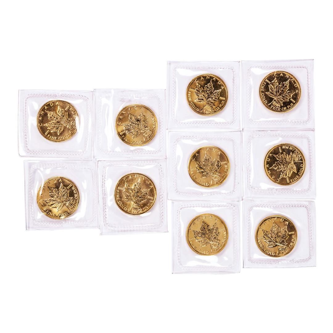 One Lot of (10) Sealed 1999 Canadian $5 Maple Leaf Gold Coins.