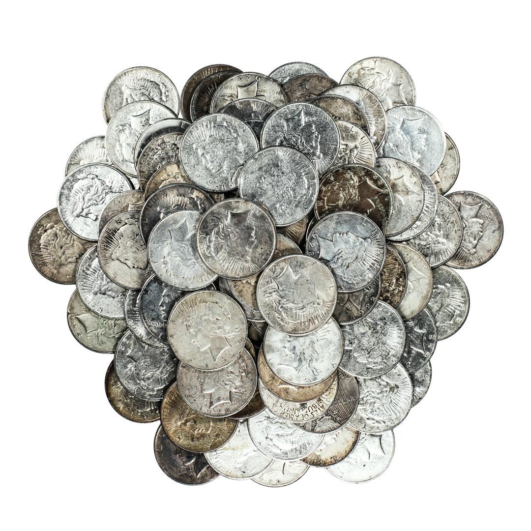 One Lot of (100) $1 Peace Silver Dollar Coins Culls.