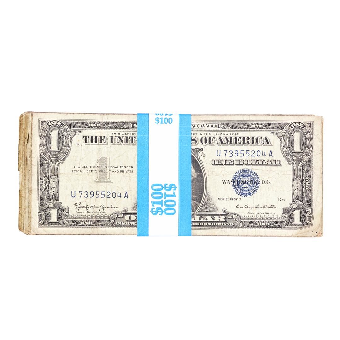 One Lot of (100) 1957/A/B $1 Silver Certificate Notes.