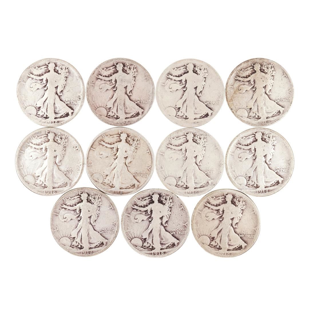 One Lot of (11) 1918-P/D/S Walking Liberty Half Dollar Coins.