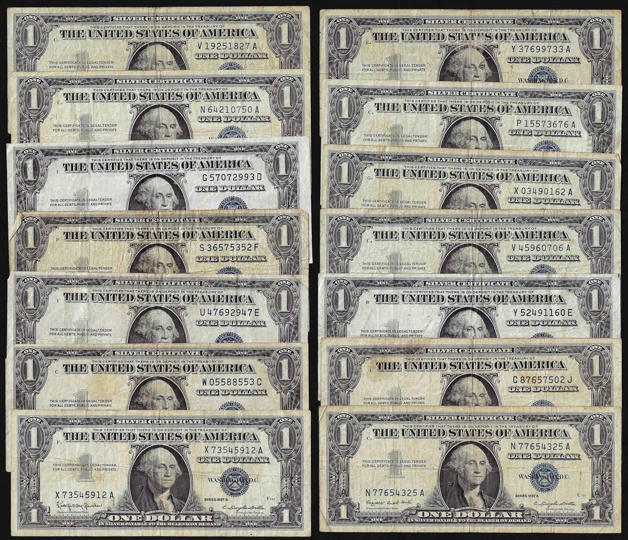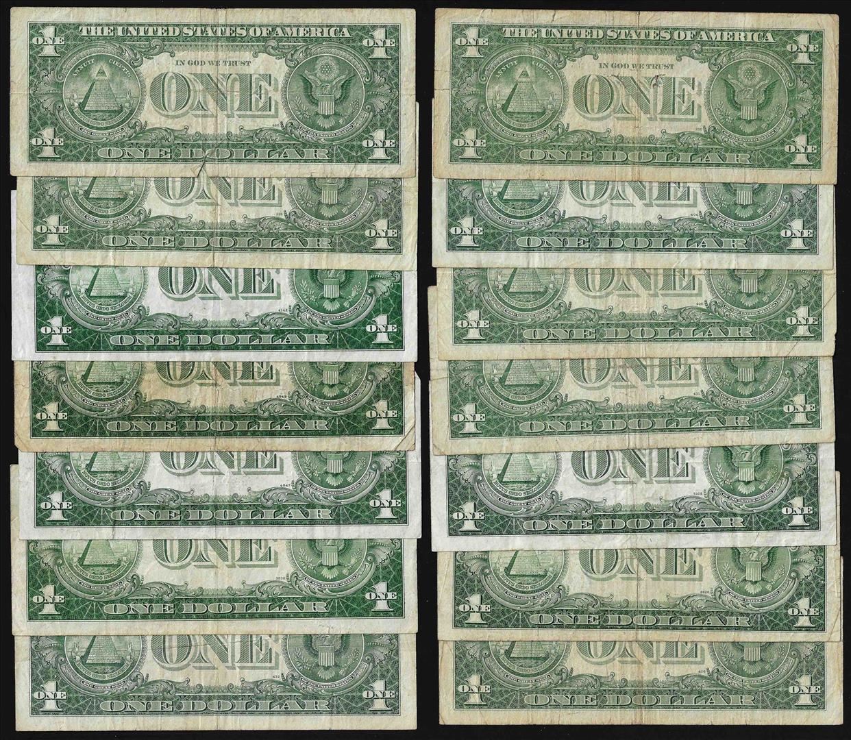One Lot of (14) 1935 & 1957 $1 Silver Certificate Notes.