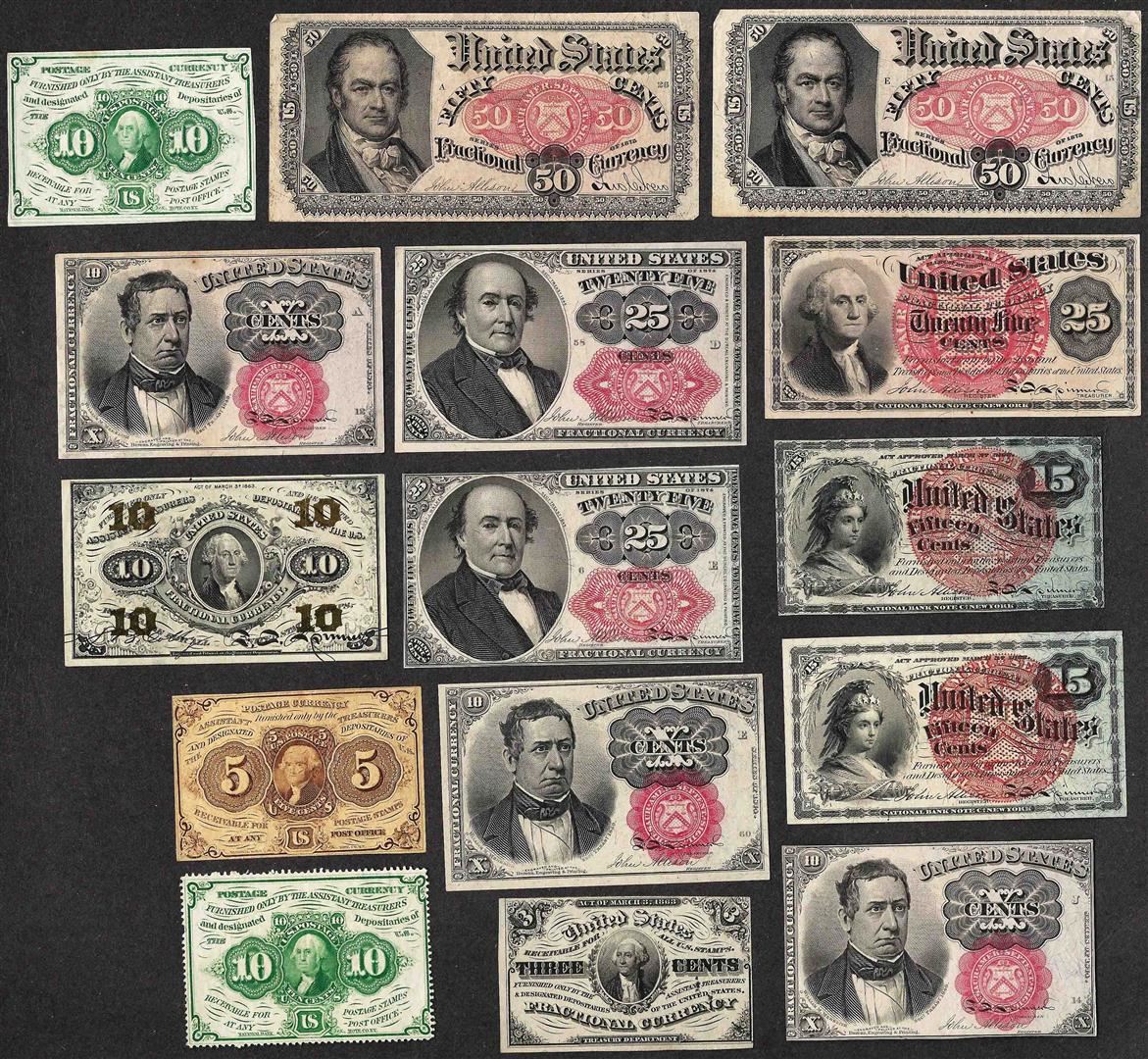 One Lot of (15) 1863-1875 Miscelaneous Fractional Currency Notes.