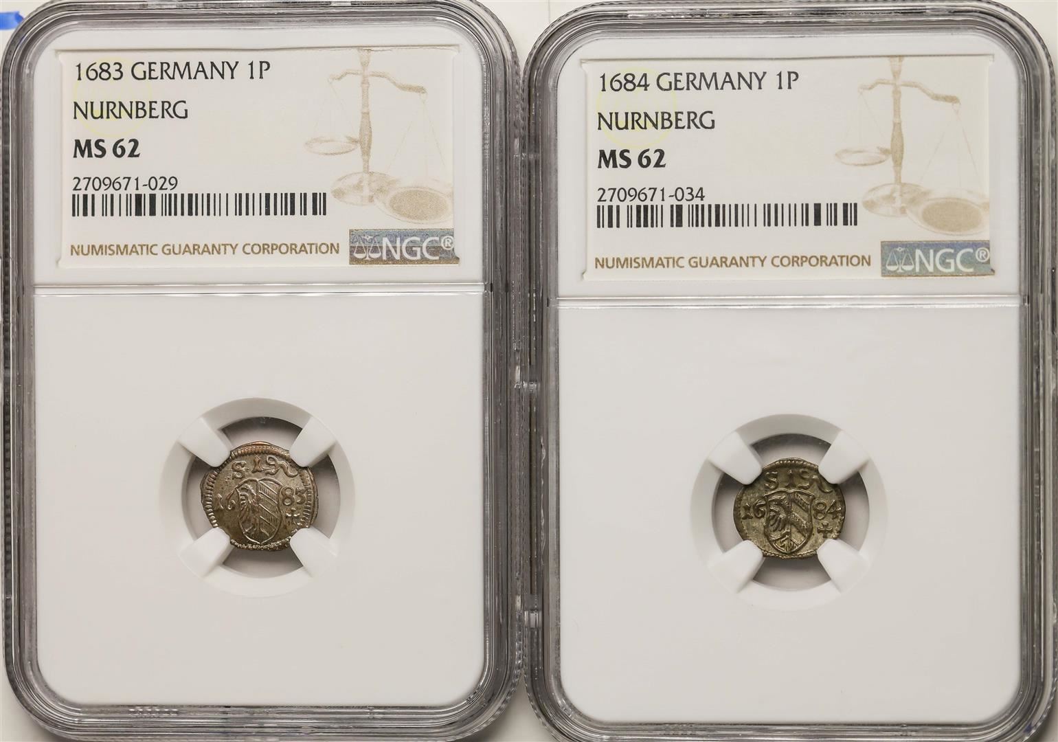 Lot of 1683-1684 Germany Nurnberg Pfennig Coins NGC MS62