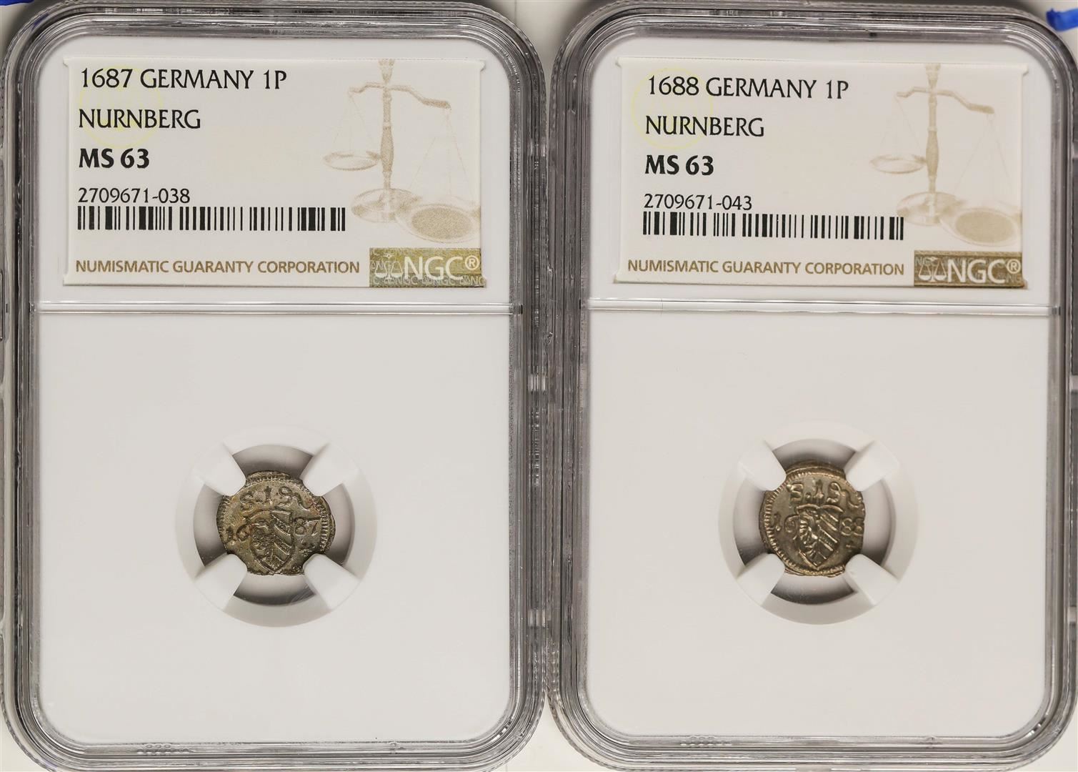 One Lot of 1687-1688 Germany Nurnberg Pfennig Coins NGC MS63. NGC Certified.