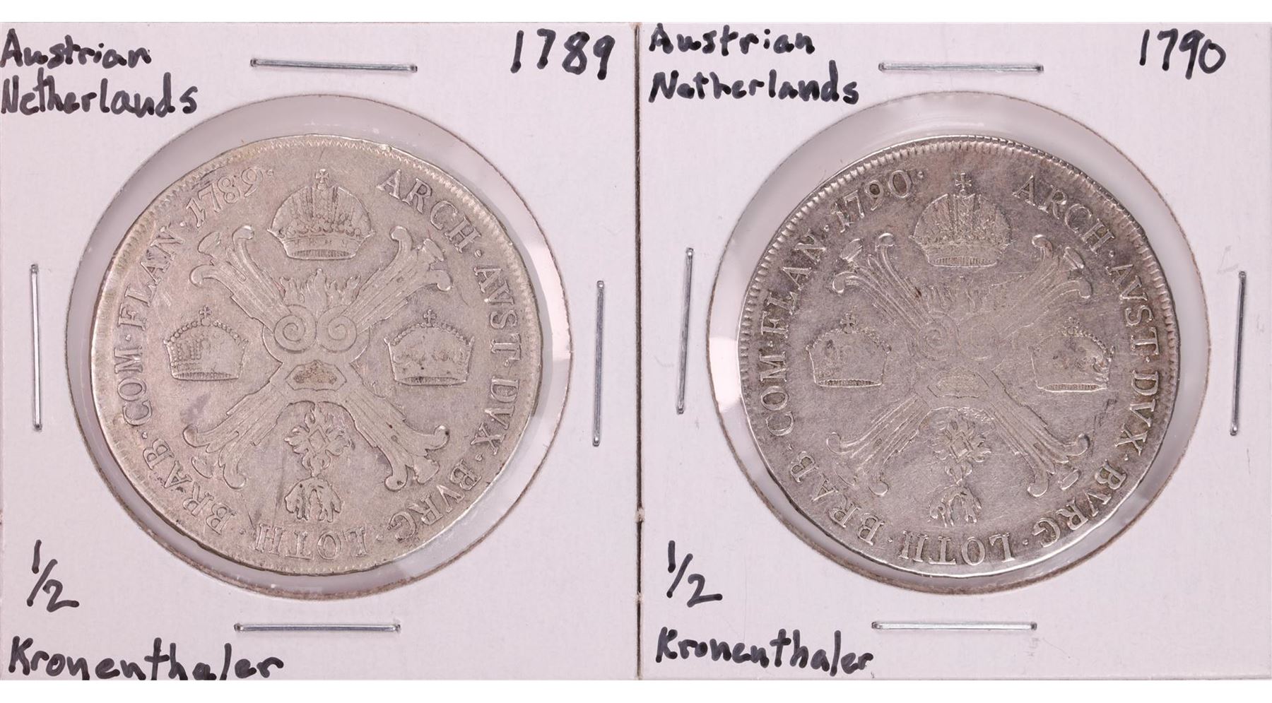 Lot of 1789-1790 Austrian Netherlands 1/2 Kronenthaler Silver Coins