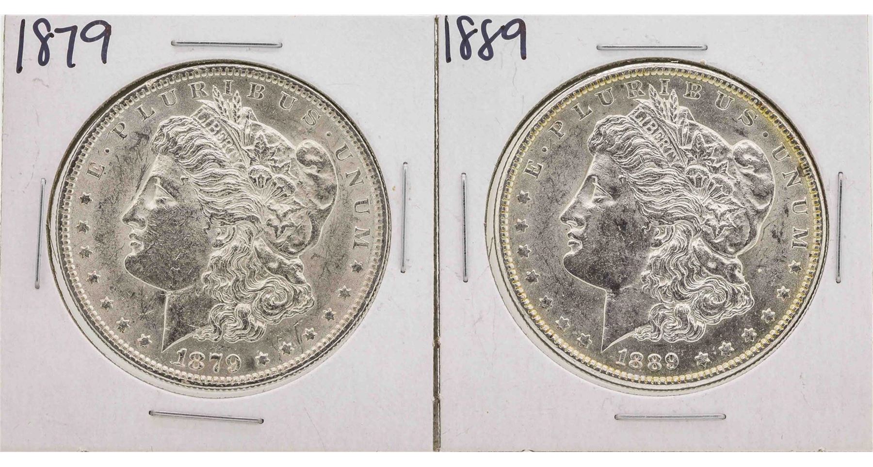 One Lot of 1879 & 1889 $1 Morgan Silver Dollar Coins.