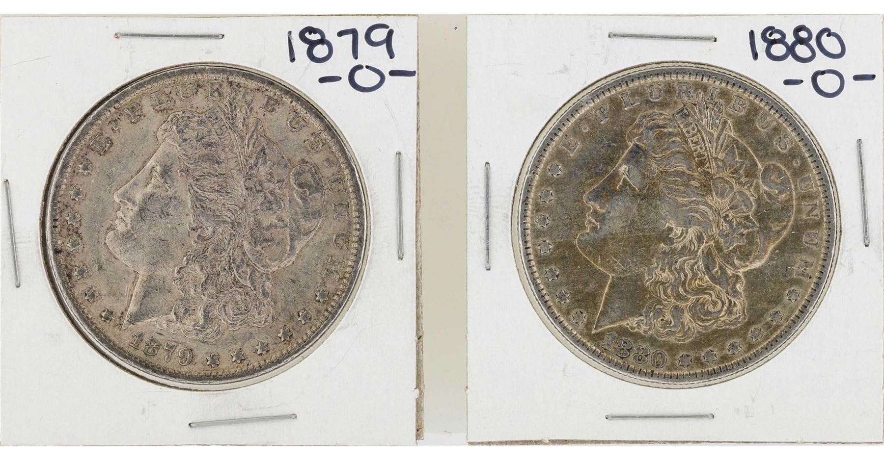 One Lot of 1879-O & 1880-O $1 Morgan Silver Dollar Coins.