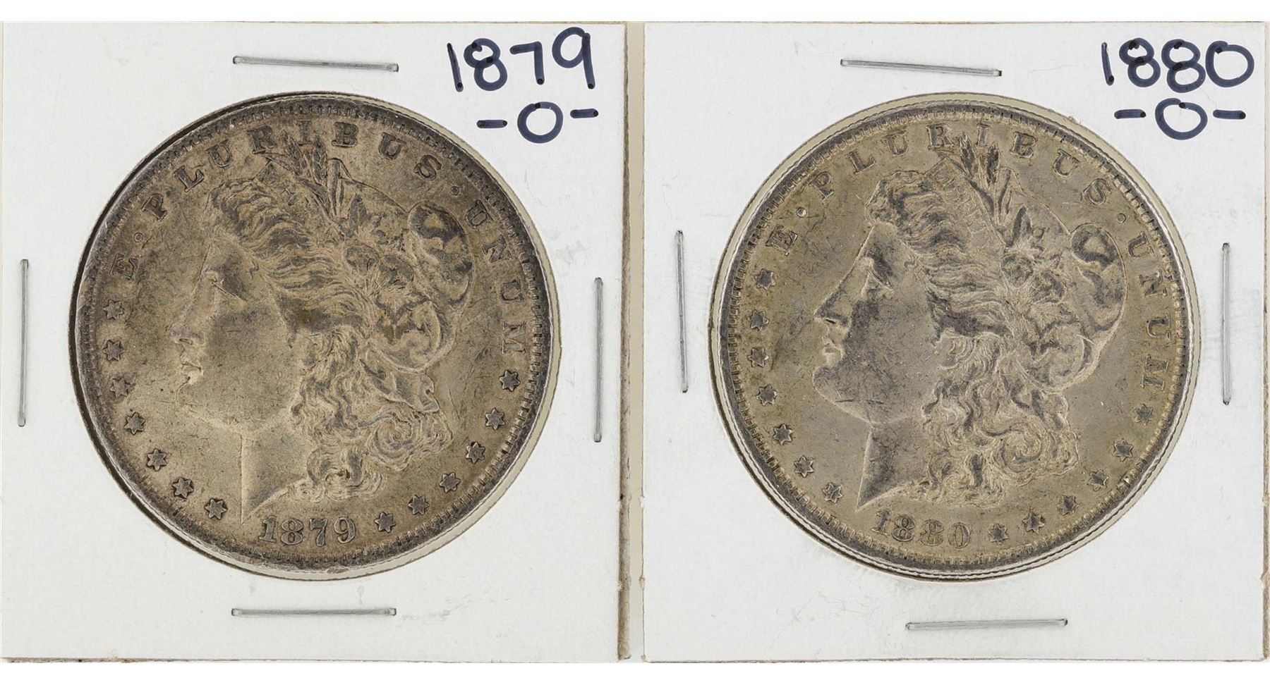 One Lot of 1879-O & 1880-O $1 Morgan Silver Dollar Coins.
