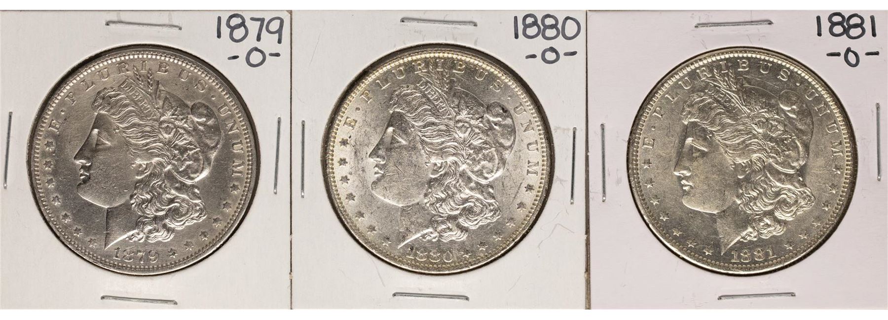One Lot of 1879-O to 1881-O $1 Morgan Silver Dollar Coins.