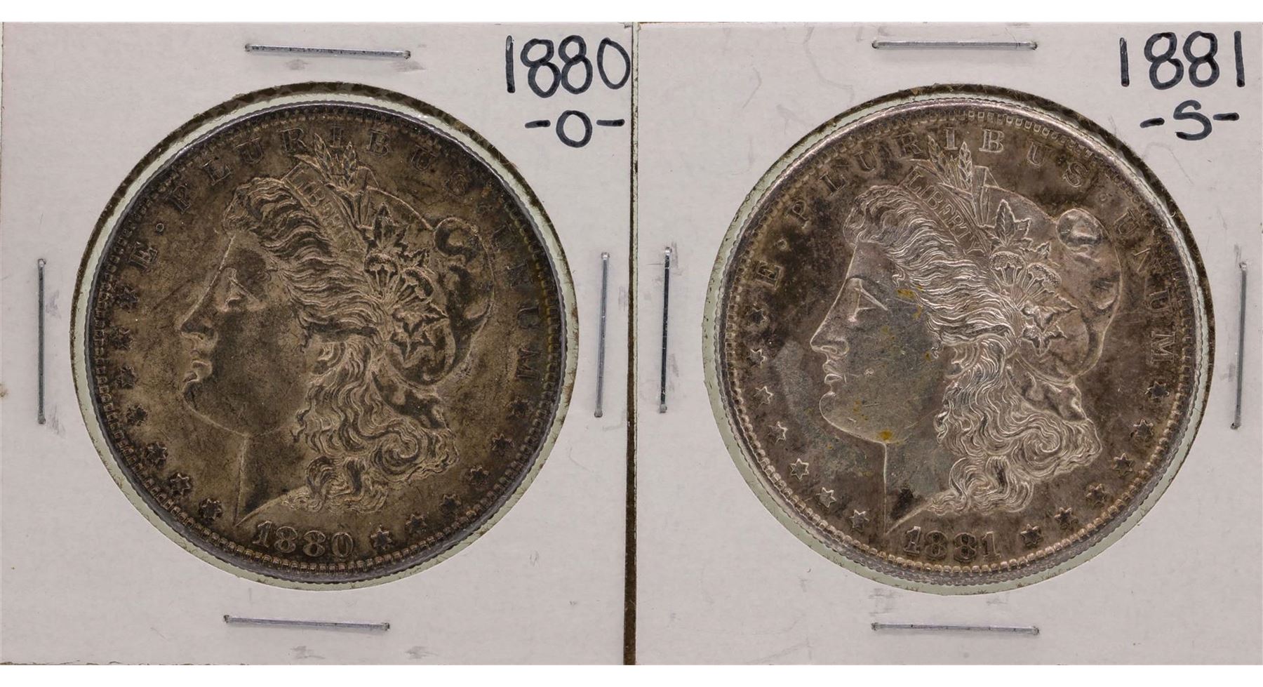 One Lot of 1880-O & 1881-S $1 Morgan Silver Dollar Coins.
