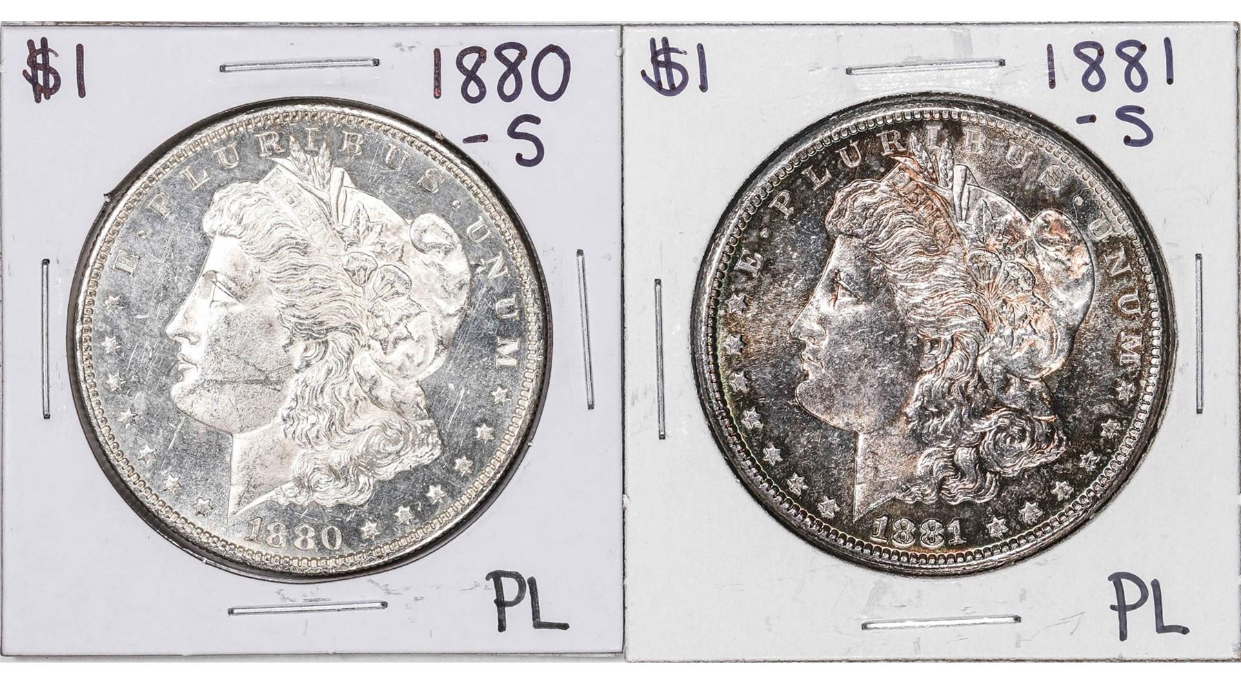 Lot of 1880-S & 1881-S $1 Morgan Silver Dollar Coins Proof Like