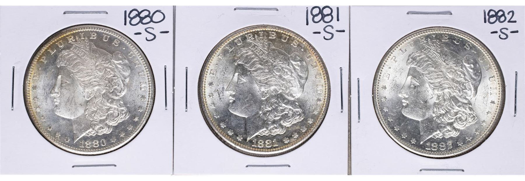 Lot of 1880-S, 1881-S & 1882-S $1 Morgan Silver Dollar Coins