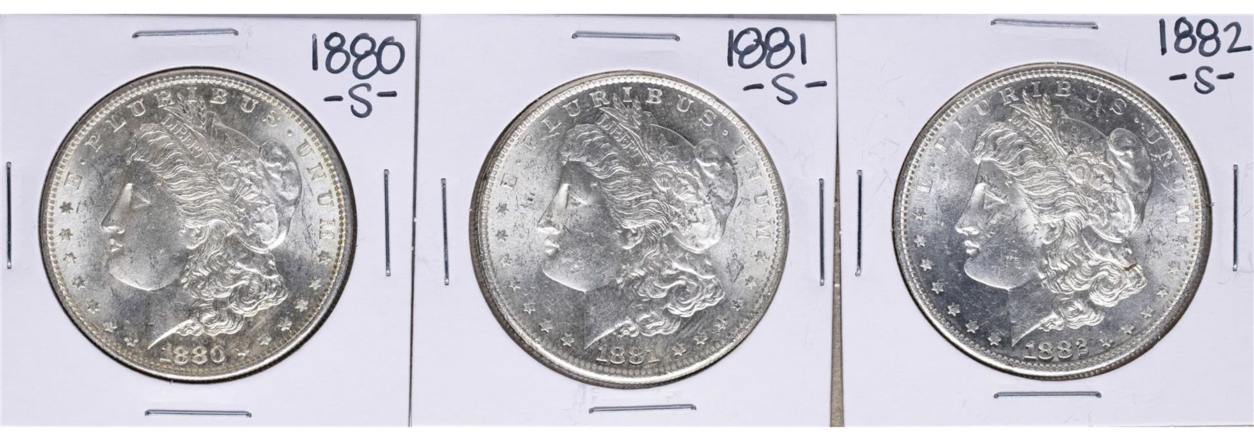 Lot of 1880-S, 1881-S & 1882-S $1 Morgan Silver Dollar Coins