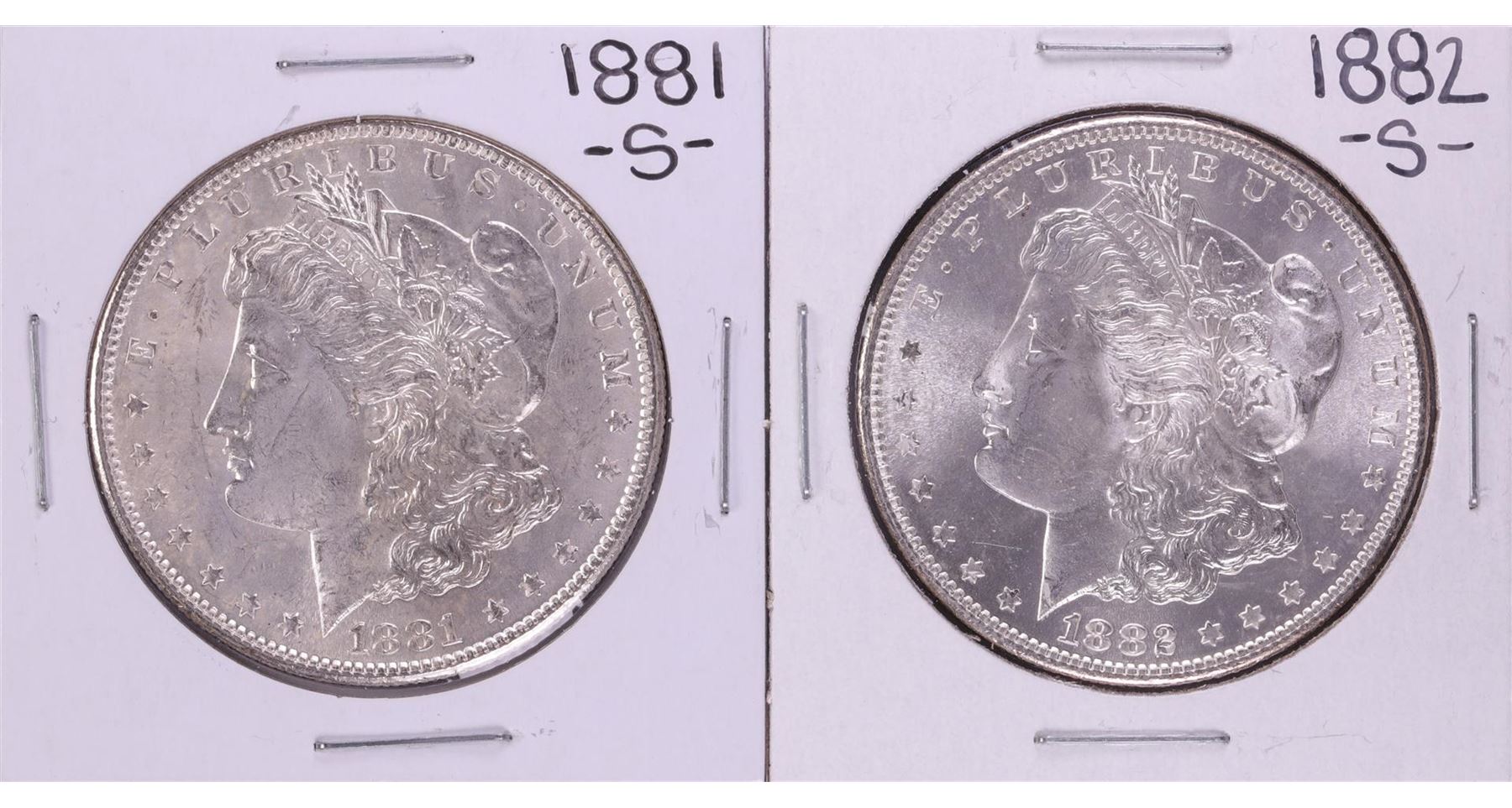 One Lot of 1881-S & 1882-S $1 Morgan Silver Dollar Coins.