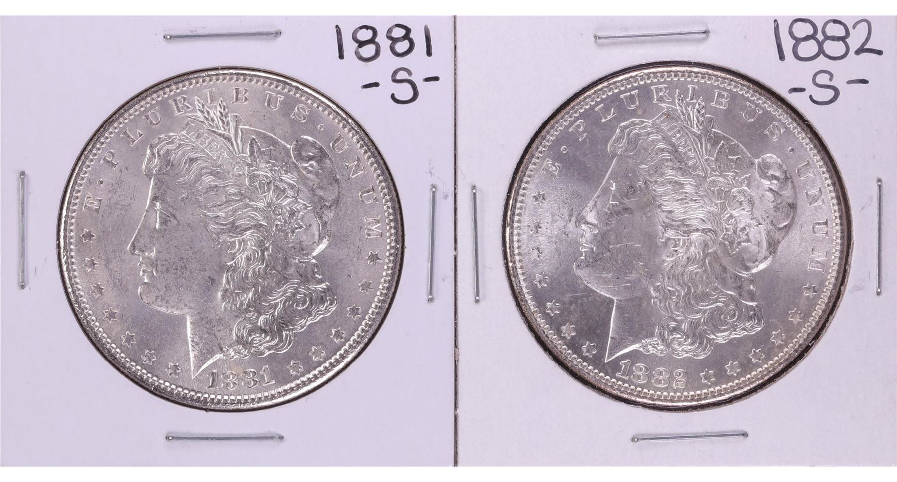 One Lot of 1881-S & 1882-S $1 Morgan Silver Dollar Coins.