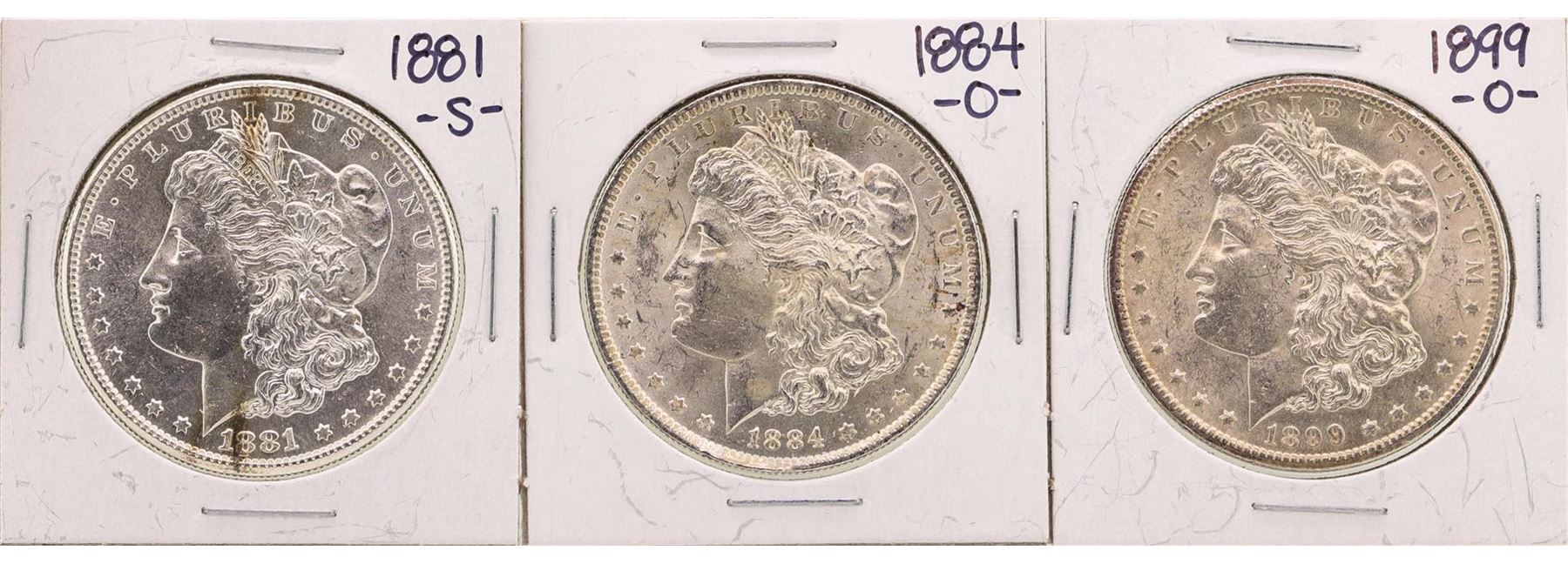 Lot of 1881-S, 1884-O, & 1899-O $1 Morgan Silver Dollar Coins