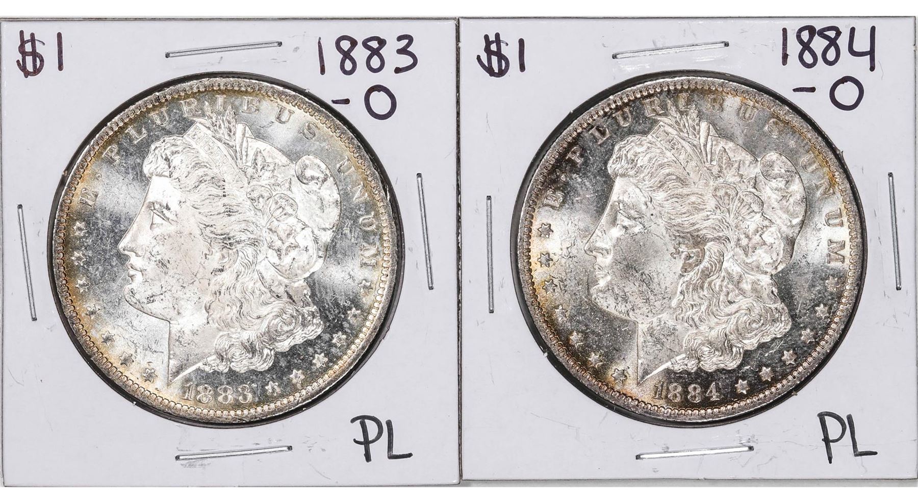Lot of 1883-O & 1884-O $1 Morgan Silver Dollar Coins Proof Like