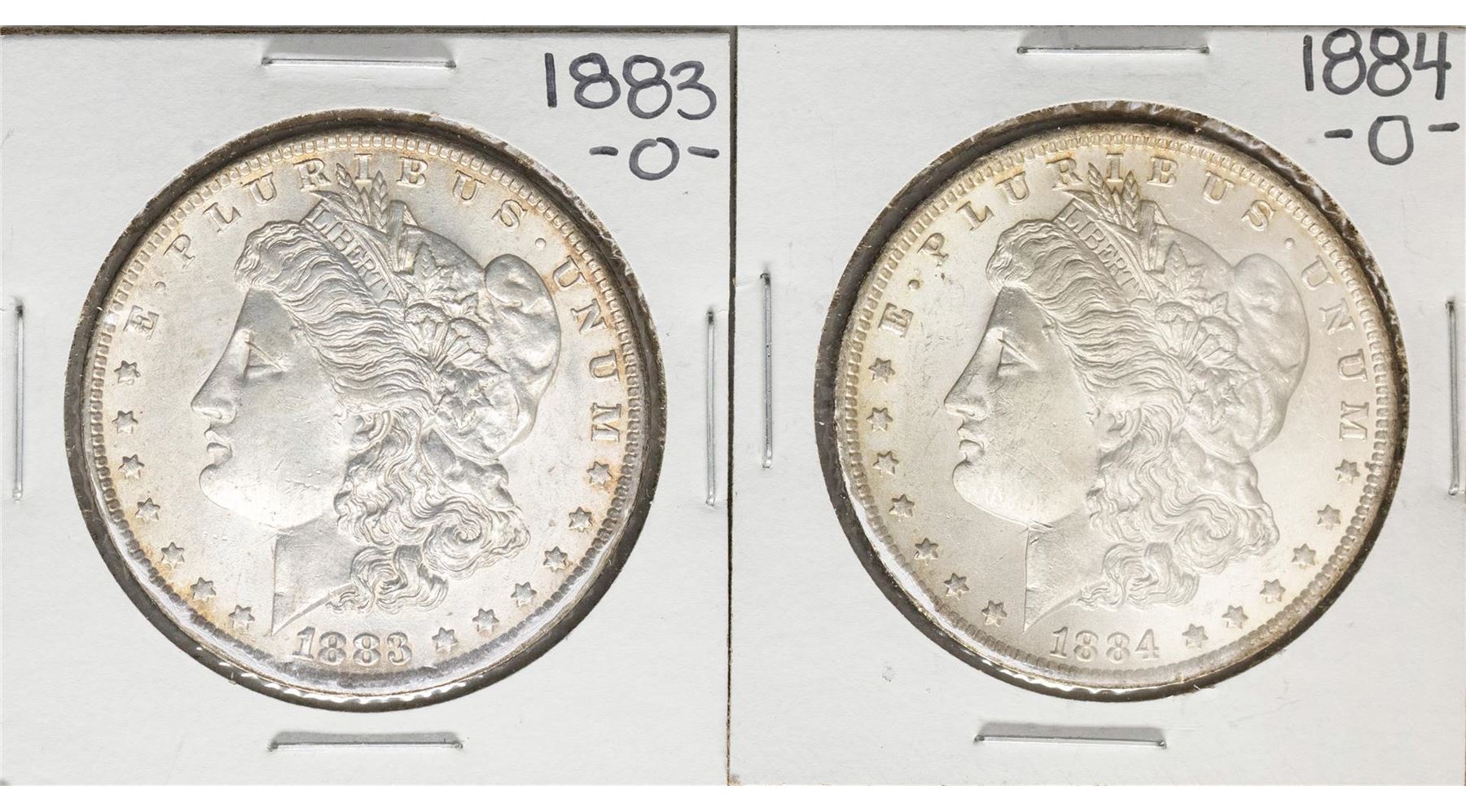One Lot of 1883-O & 1884-O $1 Morgan Silver Dollar Coins.
