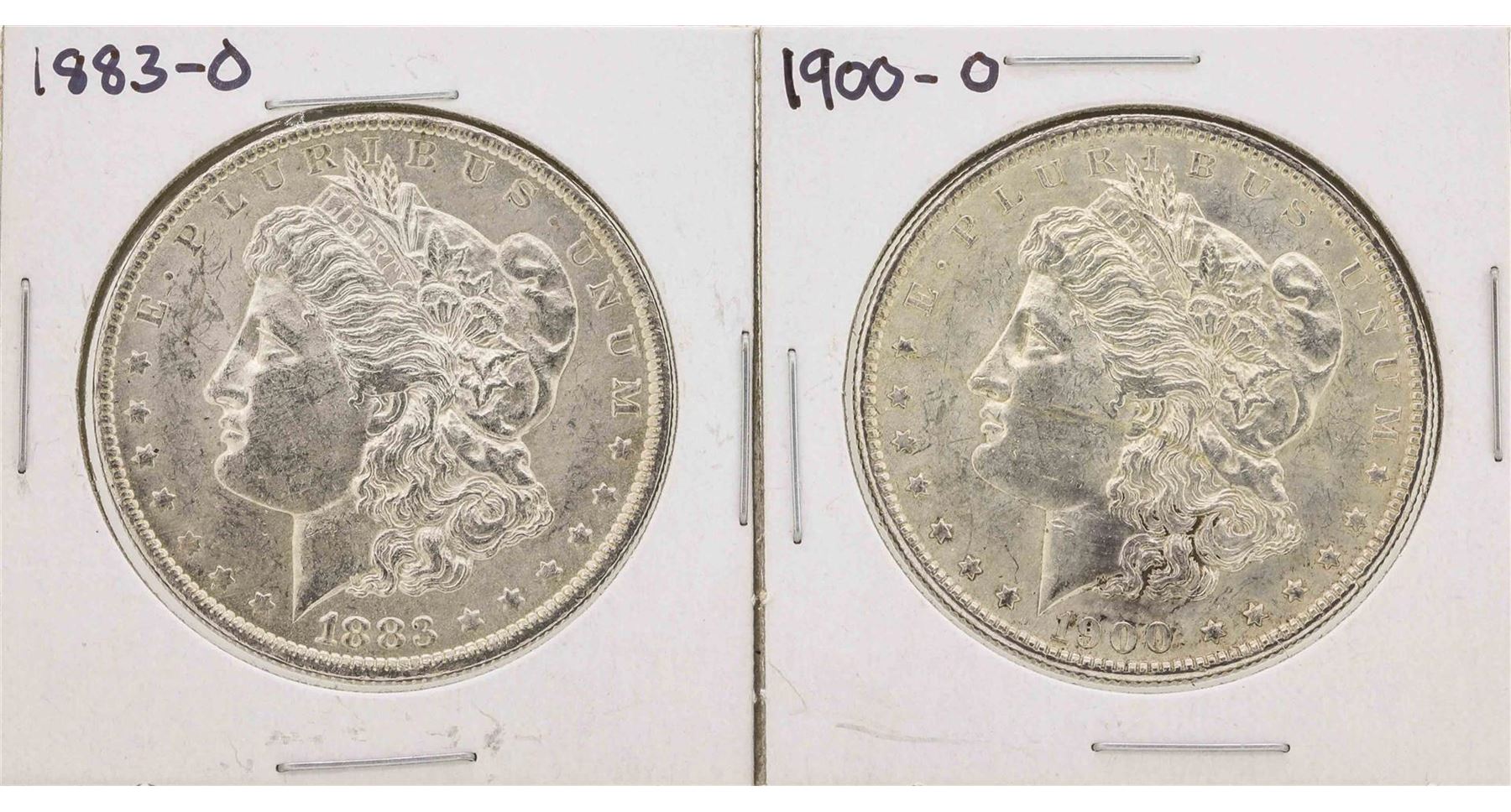 One Lot of 1883-O & 1900-O $1 Morgan Silver Dollar Coins.
