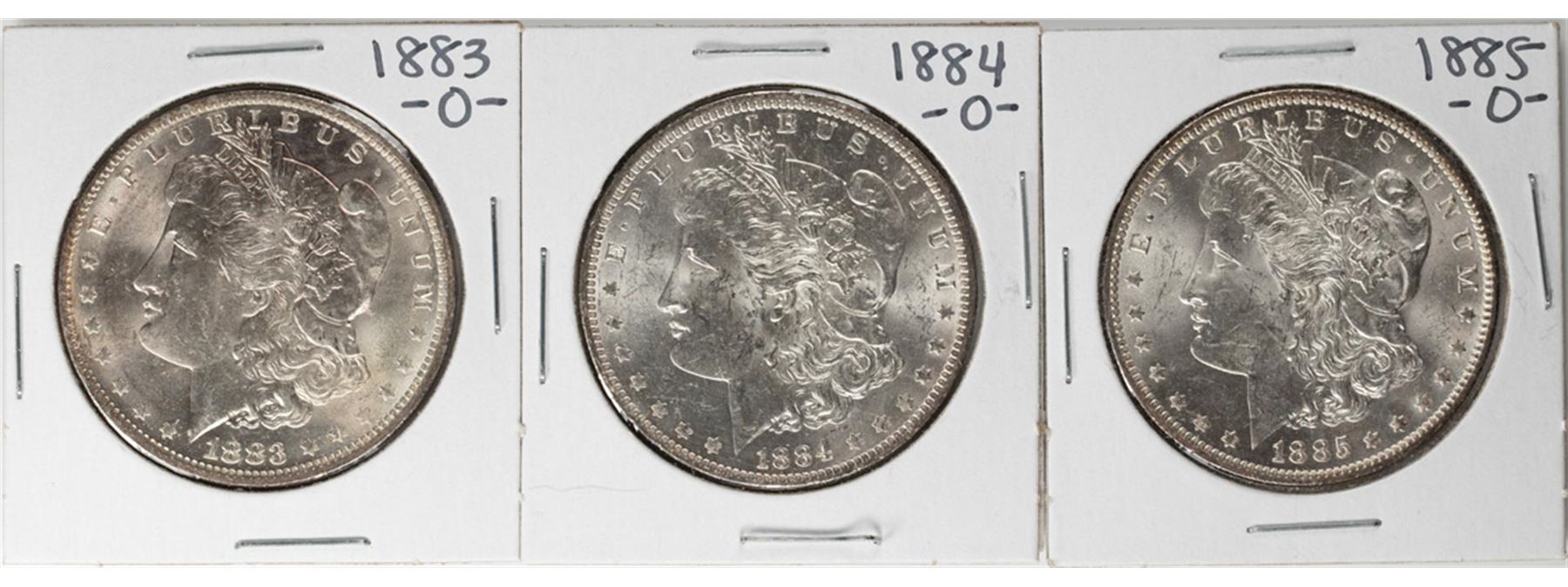 One Lot of 1883-O to 1885-O $1 Morgan Silver Dollar Coins.