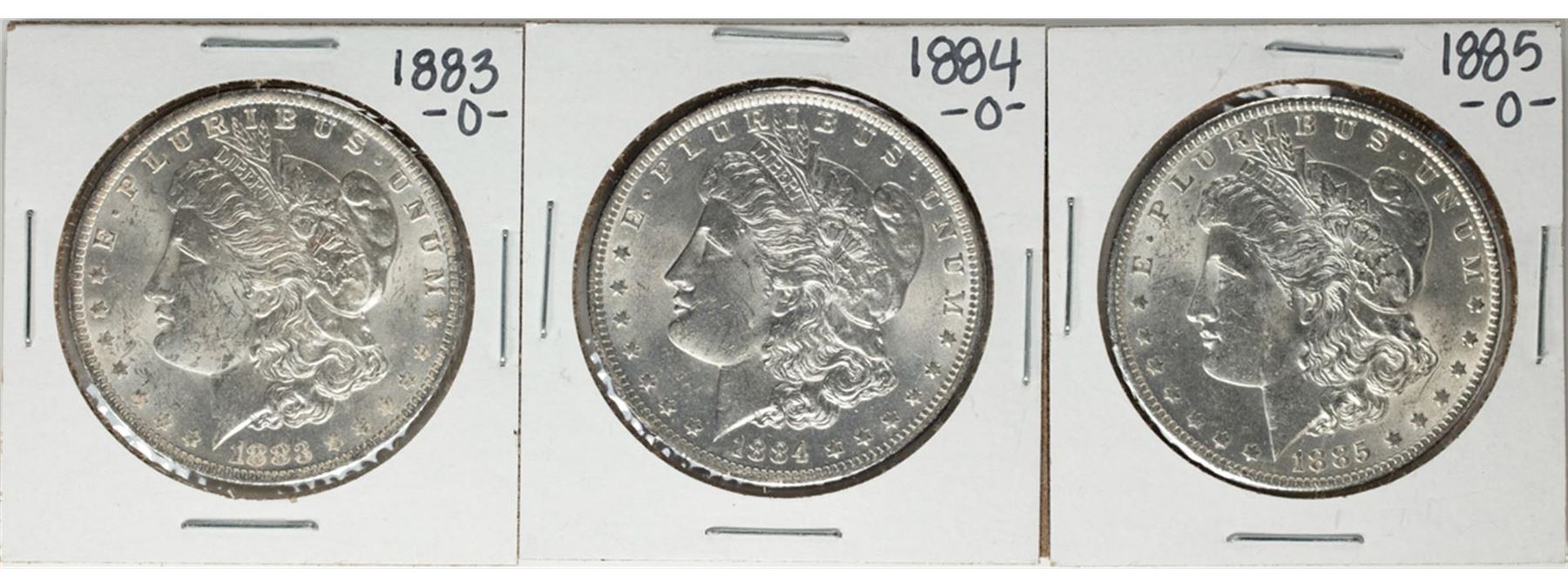 One Lot of 1883-O to 1885-O $1 Morgan Silver Dollar Coins.
