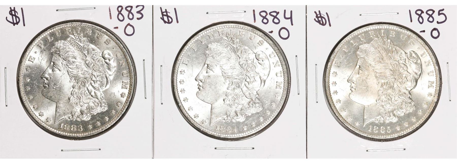 One Lot of 1883-O to 1885-O $1 Morgan Silver Dollar Coins.