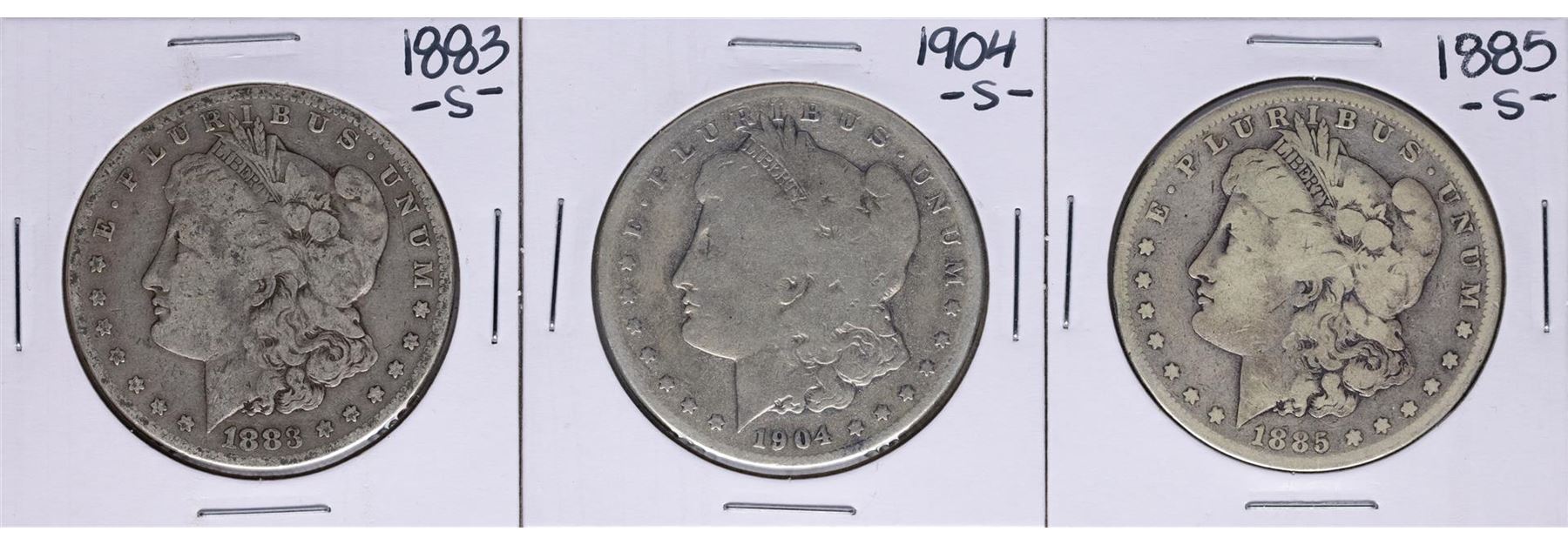 Lot of 1883-S, 1885-S, & 1904-S $1 Morgan Silver Dollar Coins