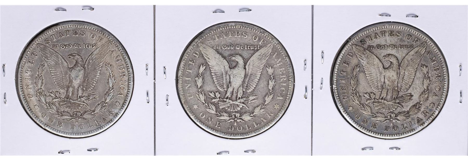 One Lot of 1883-S to 1885-S $1 Morgan Silver Dollar Coins.