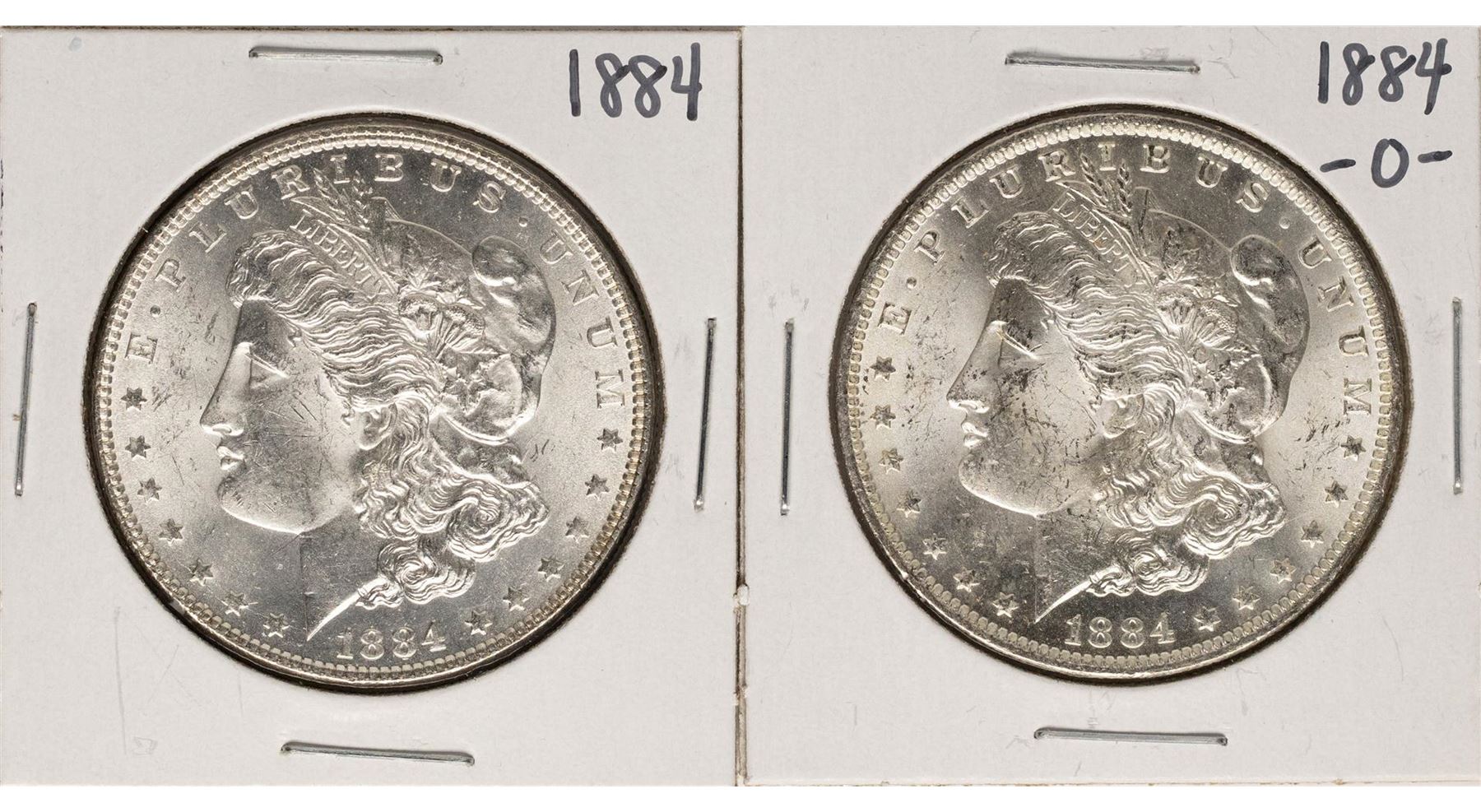 One Lot of 1884 & 1884-O $1 Morgan Silver Dollar Coins.