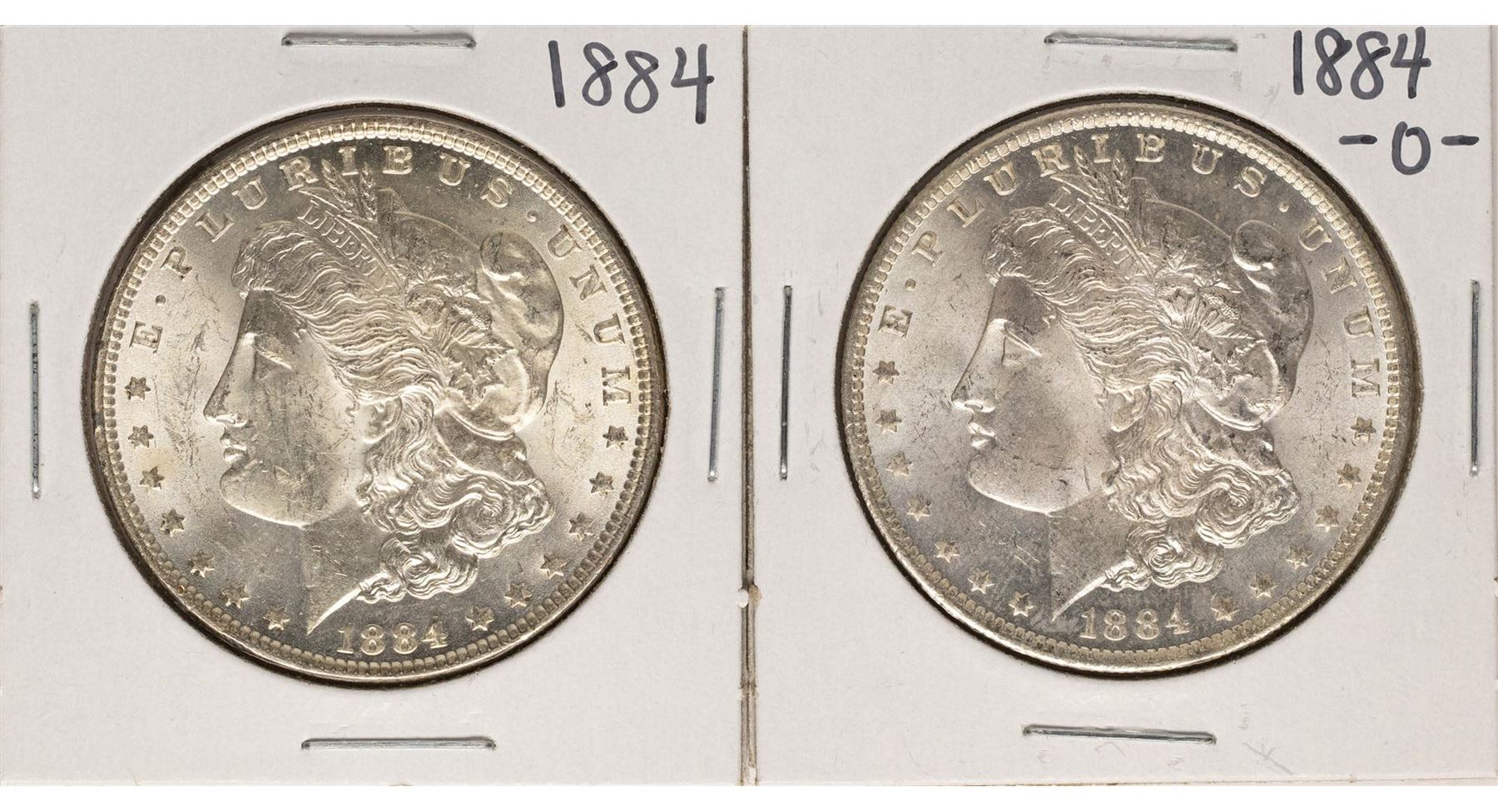 One Lot of 1884 & 1884-O $1 Morgan Silver Dollar Coins.