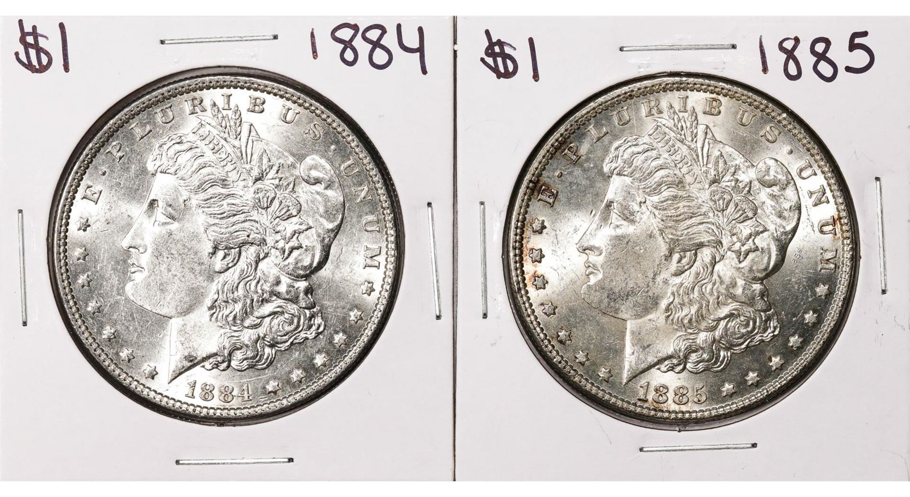 One Lot of 1884-1885 $1 Morgan Silver Dollar Coins.