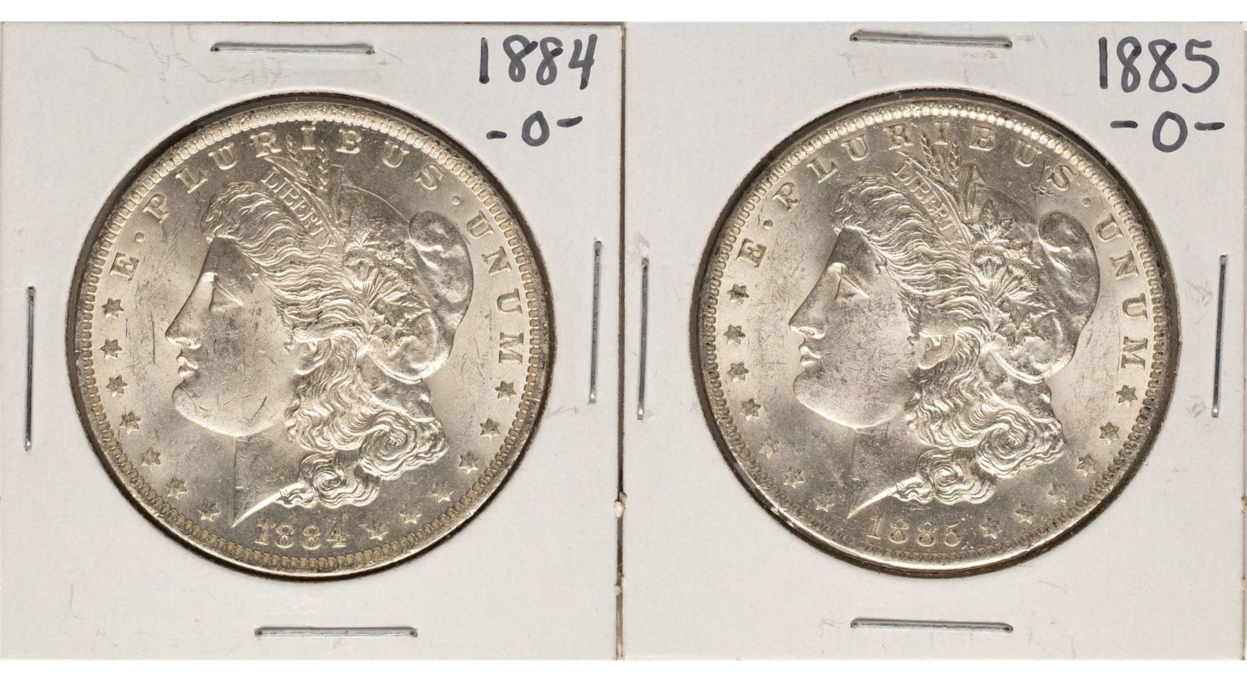 One Lot of 1884-O & 1885-O $1 Morgan Silver Dollar Coins.