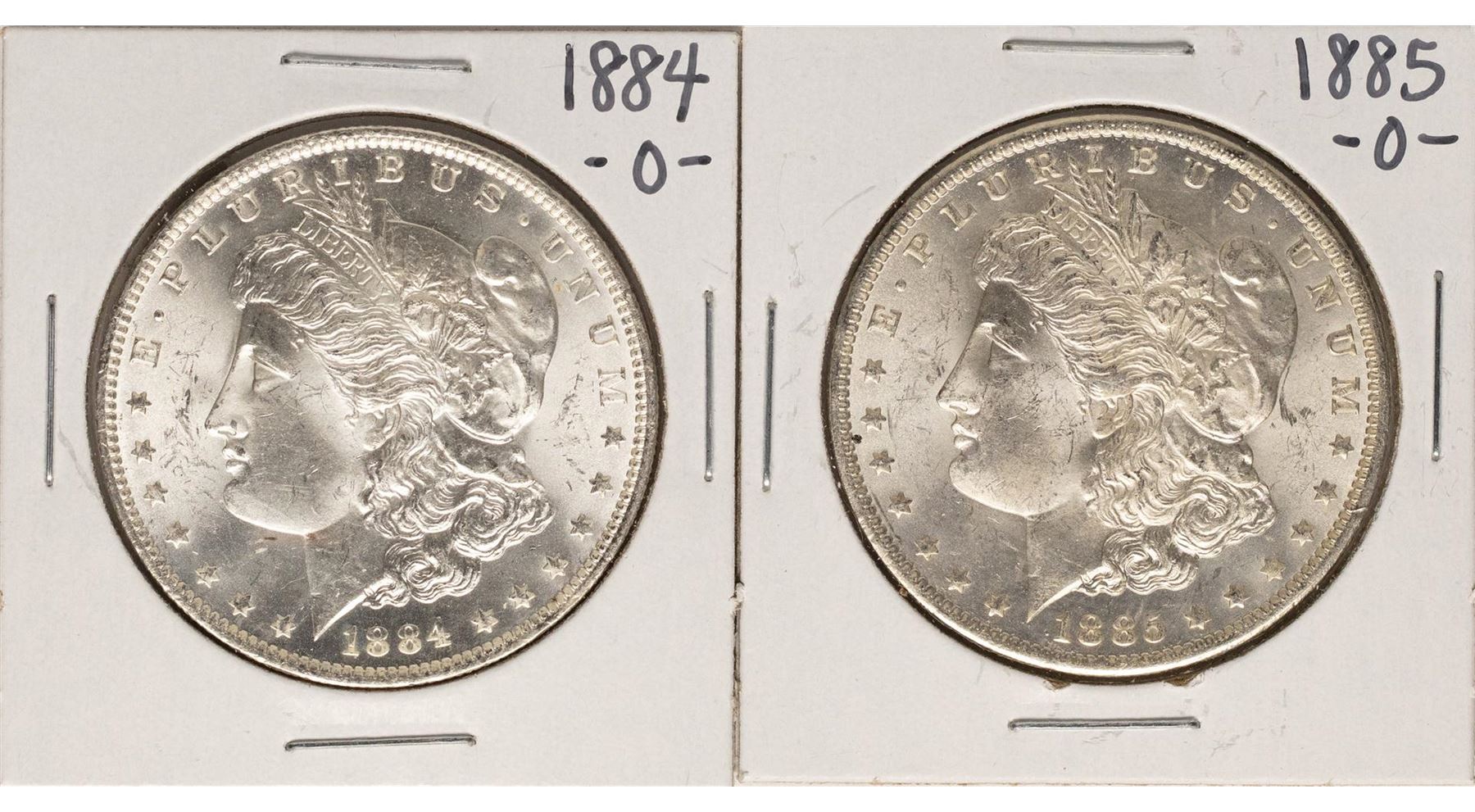 One Lot of 1884-O & 1885-O $1 Morgan Silver Dollar Coins.