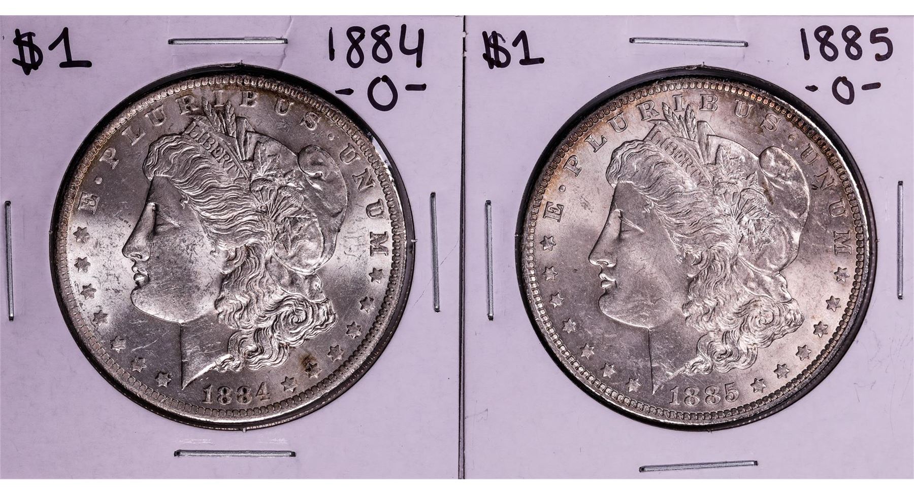 One Lot of 1884-O & 1885-O $1 Morgan Silver Dollar Coins.