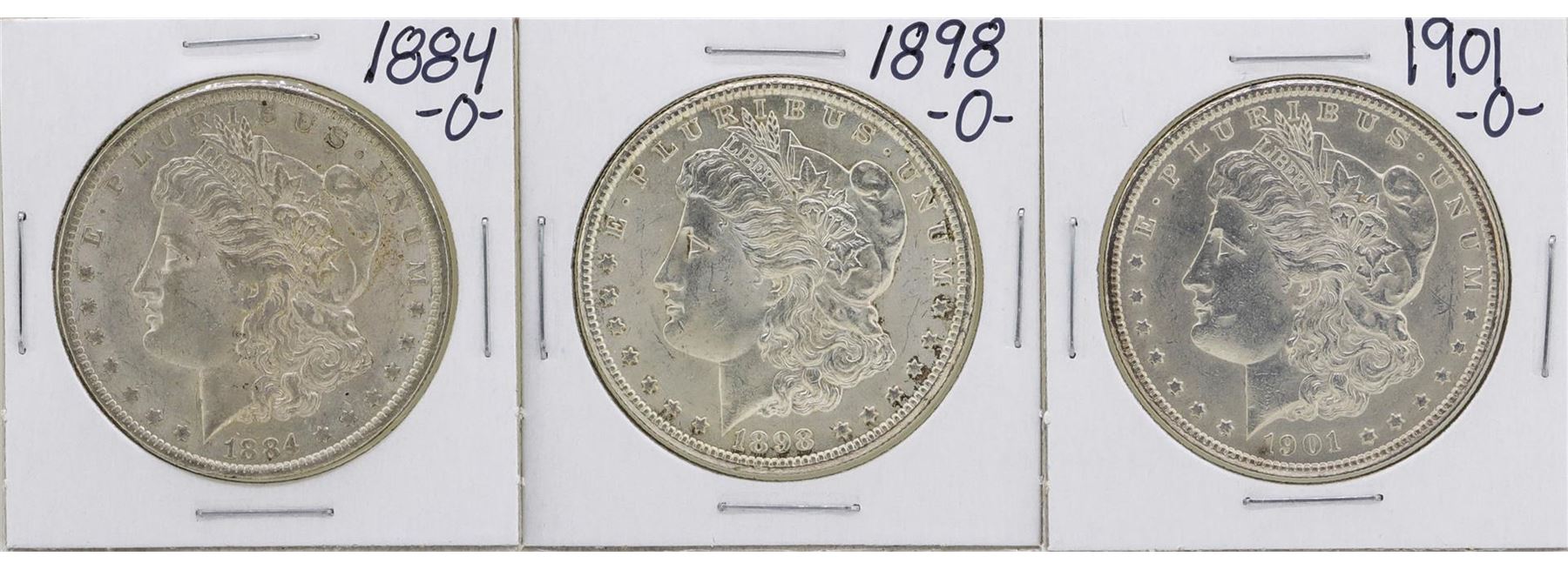 Lot of 1884-O, 1898-O, 1901-O $1 Morgan Silver Dollar Coins