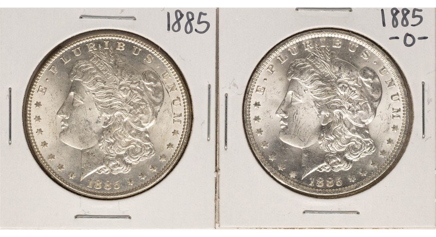 One Lot of 1885 & 1885-O $1 Morgan Silver Dollar Coins.