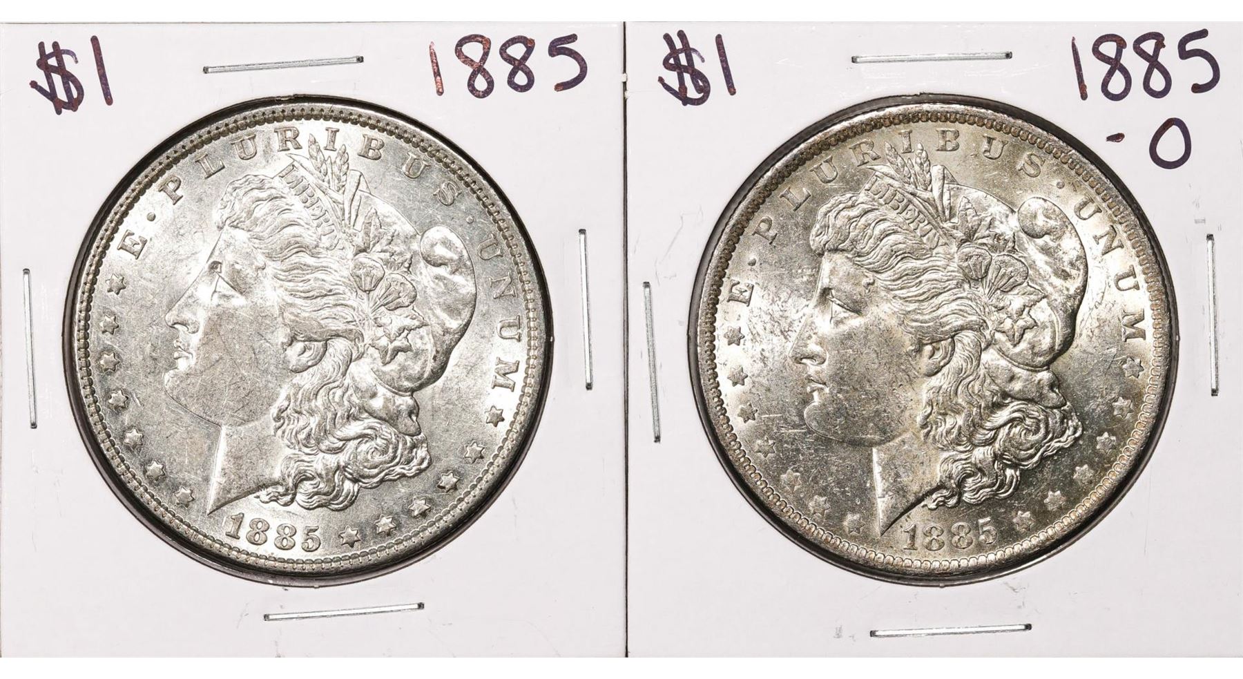 One Lot of 1885 & 1885-O $1 Morgan Silver Dollar Coins.