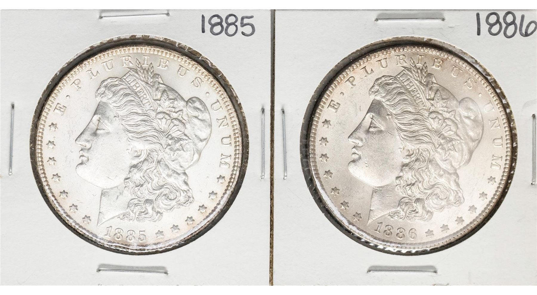 One Lot of 1885-1886 $1 Morgan Silver Dollar Coins.
