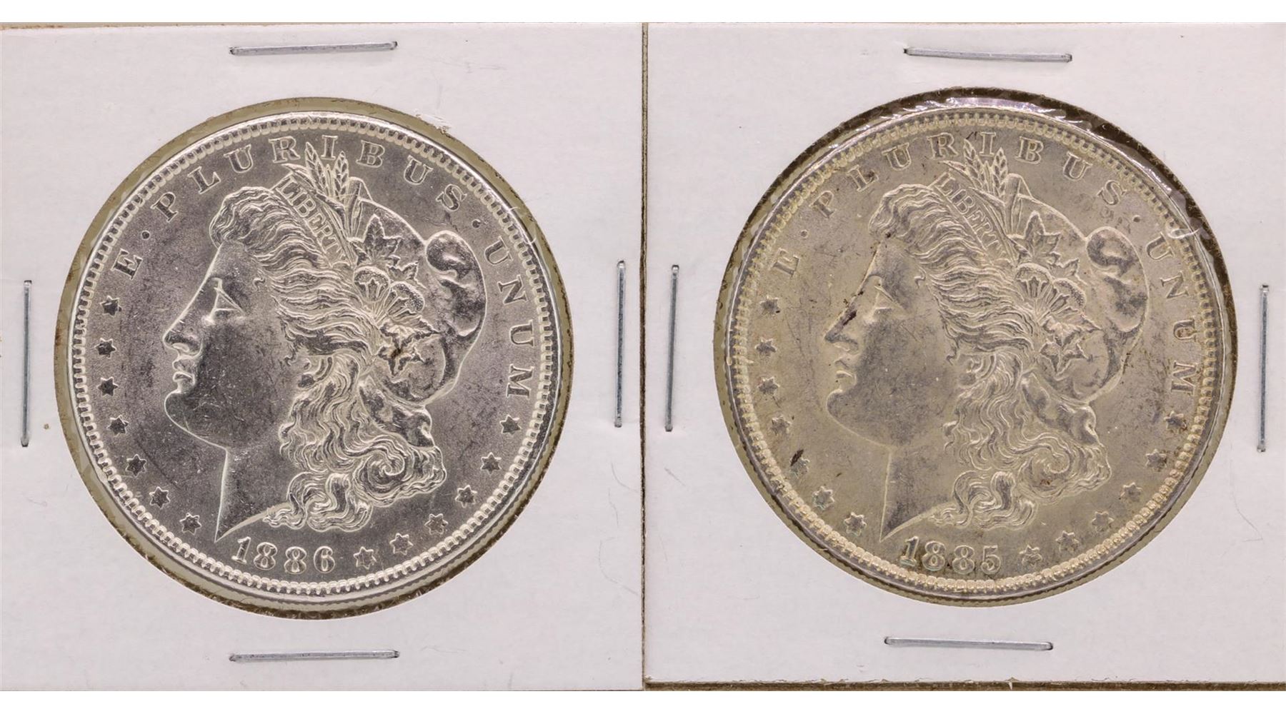 One Lot of 1885-1886 $1 Morgan Silver Dollar Coins.